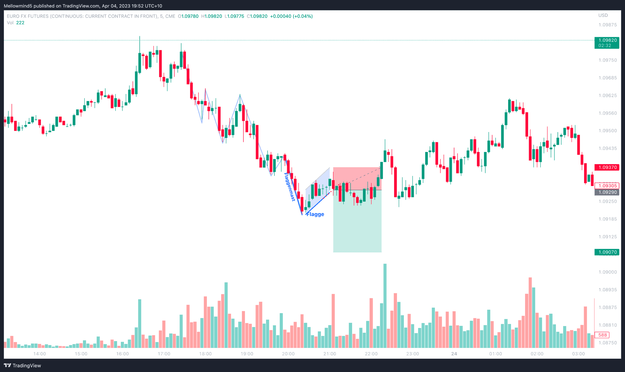 Beispiel 3: Intraday-Bärenflagge als Verlusttrade (EURO/USD Futures)