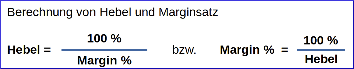 - Ein CFD ist ein “gehebeltes” Produkt. Beim Kauf eines CFD wird nicht der volle Kurswert fällig, sondern nur ein geringerer Prozentsatz davon, die “Margin”. Diese Margin muss auf dem Handelskonto des Traders verfügbar sein. Sie erfüllt die Funktion eines „Pfandbetrags“.