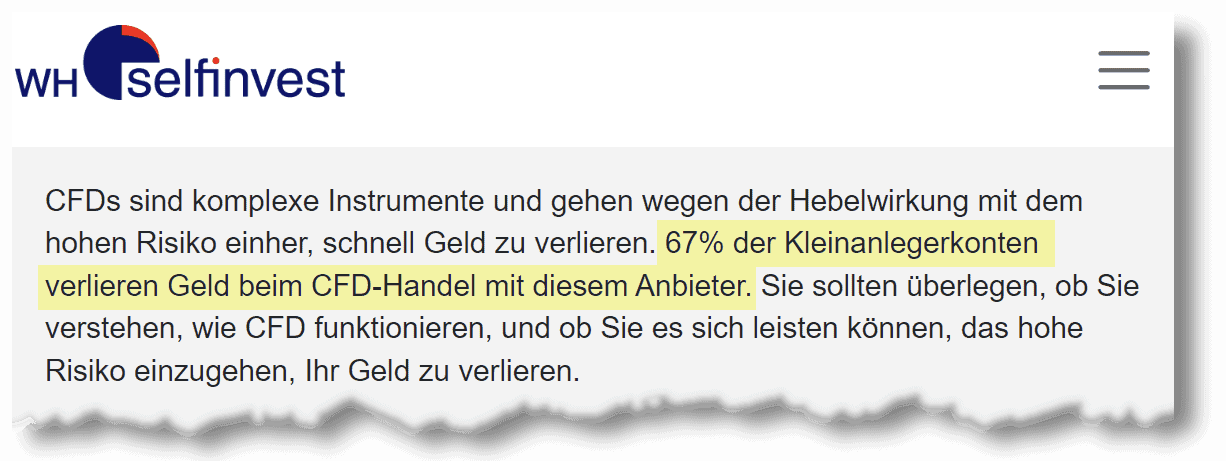 Und das kann leicht “ins Auge gehen”, missachtet man einige grundlegende Spielregeln. Nicht umsonst sind CFD-Broker gesetzlich zu folgender Angabe verpflichtet: