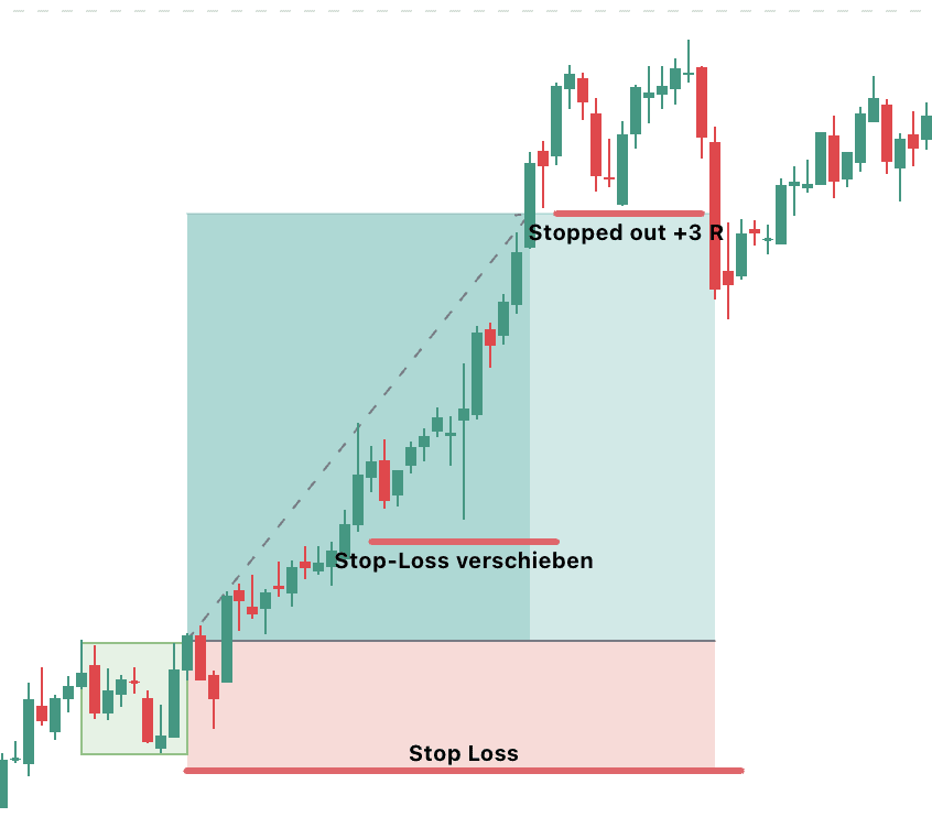 Denke daran, dass Risikomanagement und diszipliniertes Handeln bei der Darvas Box Trading Strategie im Vordergrund stehen. Setze immer Stop-Loss-Orders, um deine Investition zu schützen und Gewinne systematisch zu sichern. Bei einer Long-Position kannst du die Stop-Loss-Order unter die Box setzen. Deinen Stop-Loss kannst du mit den Marktbewegungen nach oben verschieben, um maximale Gewinne mitzunehmen. (Trailing Stop-Loss)