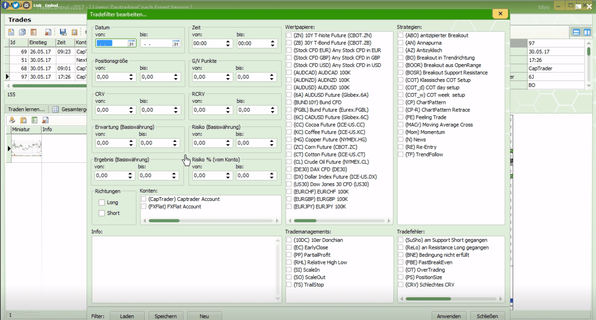 Die Filtereinstellungen und Funktionen reichen im DC TradeControl Expert nochmal deutlich weiter.