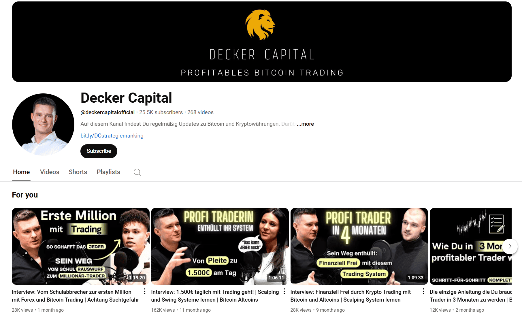 Ein besonderes Highlight von Decker Capital ist die Vielzahl an kostenlosen Inhalten, die Roman Decker über seinen YouTube-Kanal zur Verfügung stellt. Mit regelmäßig veröffentlichten Videos bietet er Tradern wertvolle Einblicke in Trading-Strategien, Krypto-Analysen und marktbezogene Themen, die sich sowohl für Anfänger als auch für Fortgeschrittene eignen.