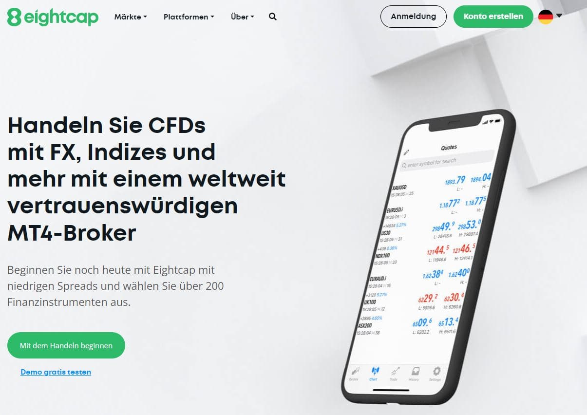 Bei Eightcap.com handelt es sich um einen Online-Broker, der sich speziell auf den Handel mit CFDs (Contracts for Difference) und Forex ausgerichtet hat. Das Unternehmen wurde im Jahr 2009 gegründet und betreibt seinen Hauptsitz auf den Bahamas. Mit mehr als 10 Jahren Erfahrung in der Branche bietet Eightcap.com seinen Kunden eine benutzerfreundliche Handelsplattform, schnelle Ausführung von Trades und eine breite Palette von Handelsinstrumenten.