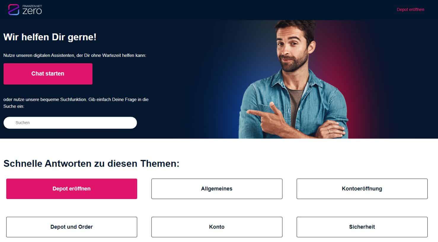 Wie zuvor bereits erwähnt, kann es stellenweise etwas länger dauern, bis sich der Kundendienst auf eine Supportanfrage zurückmeldet. Dafür gibt es aber auf der Webseite von finanzen.net ZERO einen umfassenden FAQ-Bereich, in dem zahlreiche Fragen bereits vorab beantwortet werden.