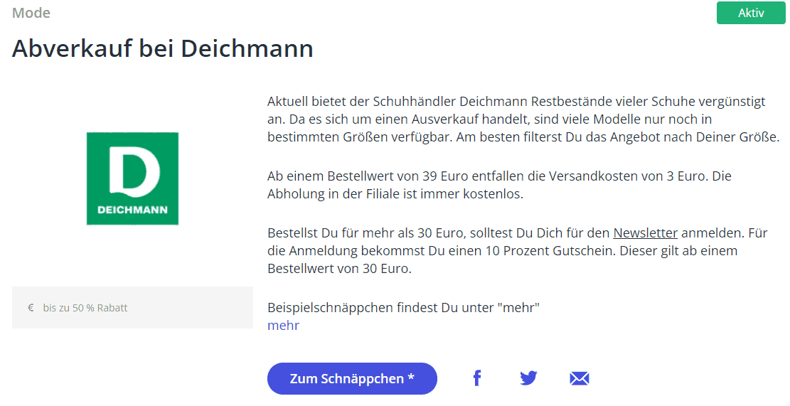 Bei den ausgewählten Deals kann es sich zum Beispiel um ein limitiertes Angebot handeln, oder aber auch um eine Neukunden-Aktion oder einen Rabatt-Gutschein. Dabei wird laut eigener Aussage darauf geachtet, dass nur Deals von seriösen Anbietern veröffentlicht werden.