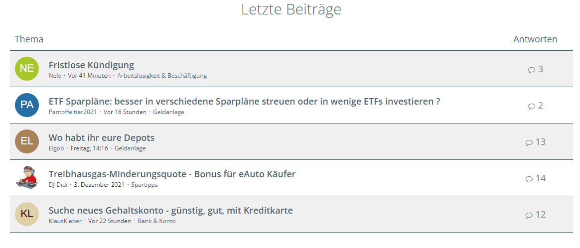 Des Weiteren findet sich auf der Finanztip-Website auch ein Forum mit derzeit knapp 17.000 Mitgliedern. Hier haben angemeldete Mitglieder die Möglichkeit, sich in zahlreichen Threads zu unterschiedlichen Finanzthemen gegenseitig auszutauschen. Mittlerweile kann dort bereits zwischen mehr als 11.000 Themen ausgewählt werden, zu denen es insgesamt schon beinahe 100.000 Beiträge gibt.