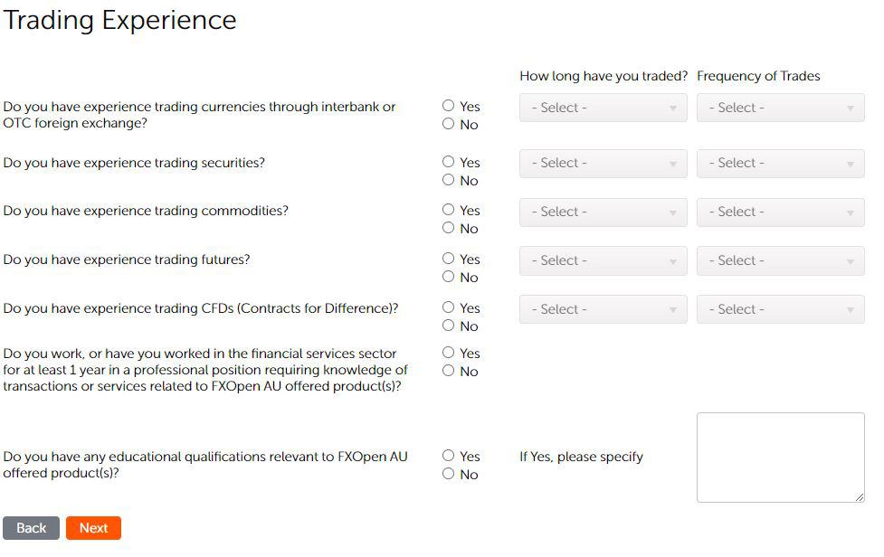 Bevor du dich jedoch verifizieren kannst, musst du eine relativ umfangreiche Umfrage durchlaufen, in denen unter anderem Infos zu deinen persönlichen Trading-Erfahrungen abgefragt werden.