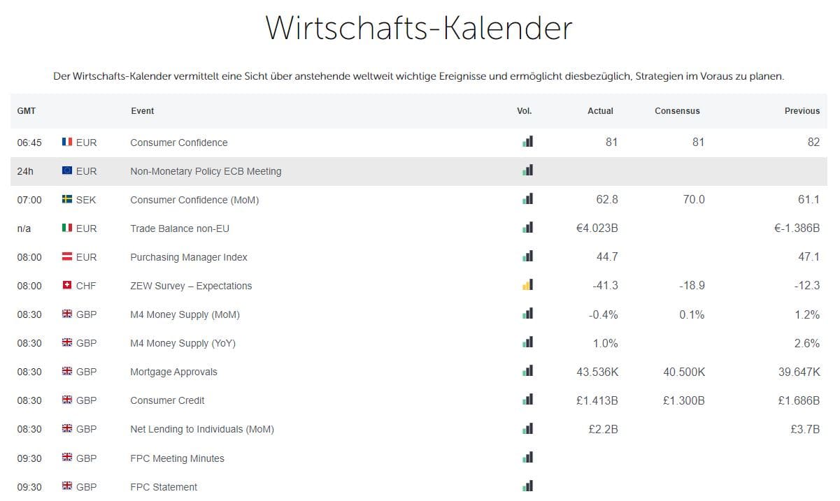 Bei FXOpen steht dir auch ein Wirtschaftskalender zur Verfügung