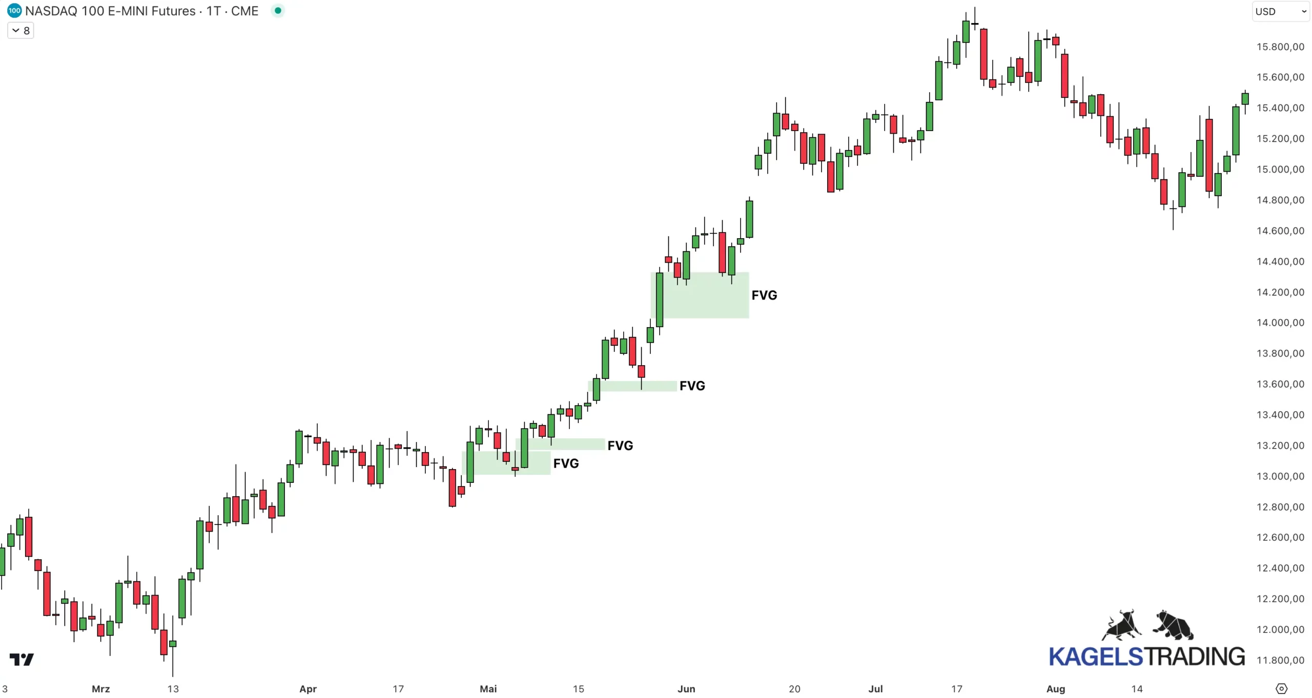 Das FVG-Konzept kann auf verschiedenen Zeitebenen angewendet werden kann, von monatlichen bis hin zu 1-Minuten-Charts, und es kann über verschiedene Assetklassen hinweg angewendet werden, einschließlich Aktien, Forex, Kryptowährungen und Indizes.