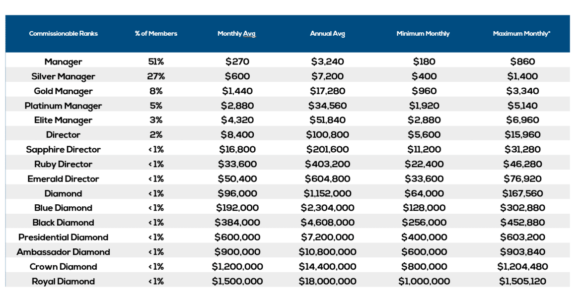 Wie bei den meisten MLM-Firmen üblich: Ein verschwindend geringer Prozentsatz verdient das meiste Geld