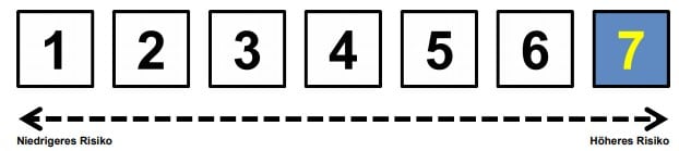 Hierbei wird auf einer Skala von 1 bis 7 die Risikoklasse eingestuft, wobei 7 der höchsten Risikoklasse entspricht. Das Risiko potenzieller Verluste aus der künftigen Wertentwicklung wird als sehr wahrscheinlich eingestuft.