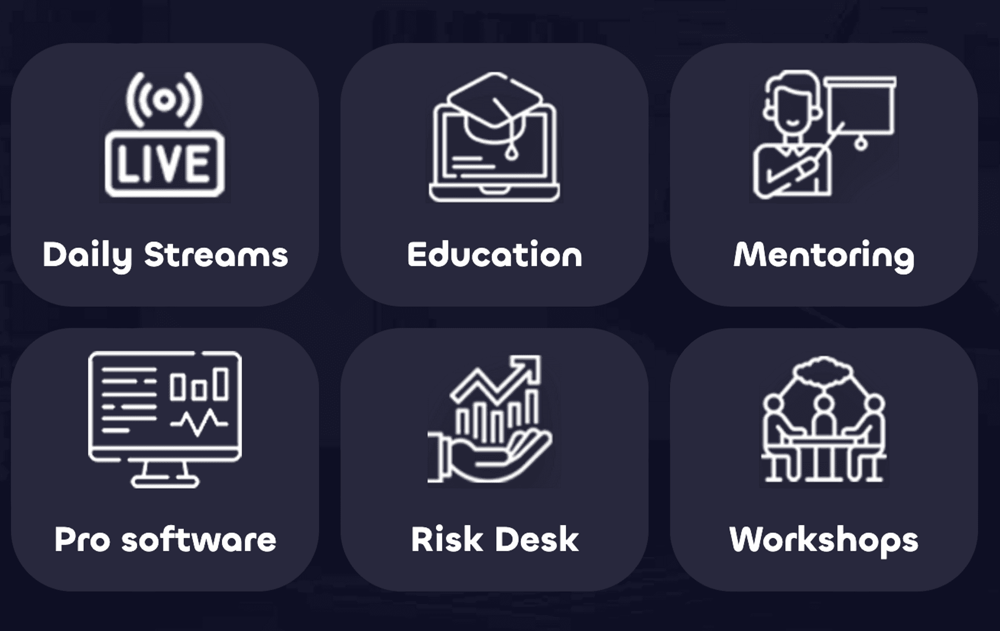 Jeder Kontotyp bietet Ihnen jedoch Zugang zu verschiedenen Elite-Funktionen. Zu den Lux-Elite-Funktionen gehören der Zugang zu einem Live-Handelsraum mit täglichen Marktanalysen, Mentoring, Bildungsinhalte, Risikomanagement-Desk und exklusive Workshops.