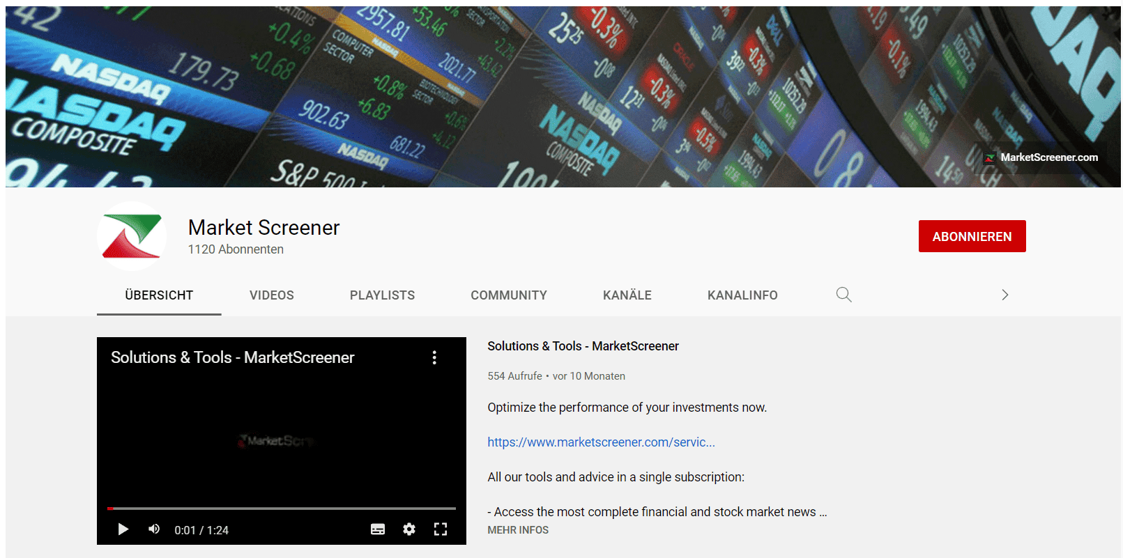 Zum Zeitpunkt der Betrachtung zählt der MarketScreener.com YouTube Kanal 1.120 Abonnenten.