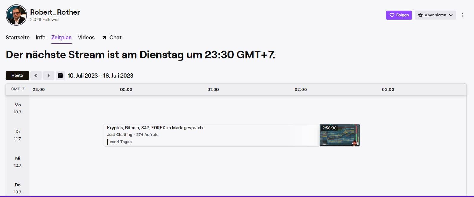 Und auf seinem Twitch-Kanal („Robert_Rother“) hat der Trading-Coach mittlerweile auch über 2.200 Follower, für die er regelmäßig Live-Streams mit Bitcoin-Analysen veröffentlicht.