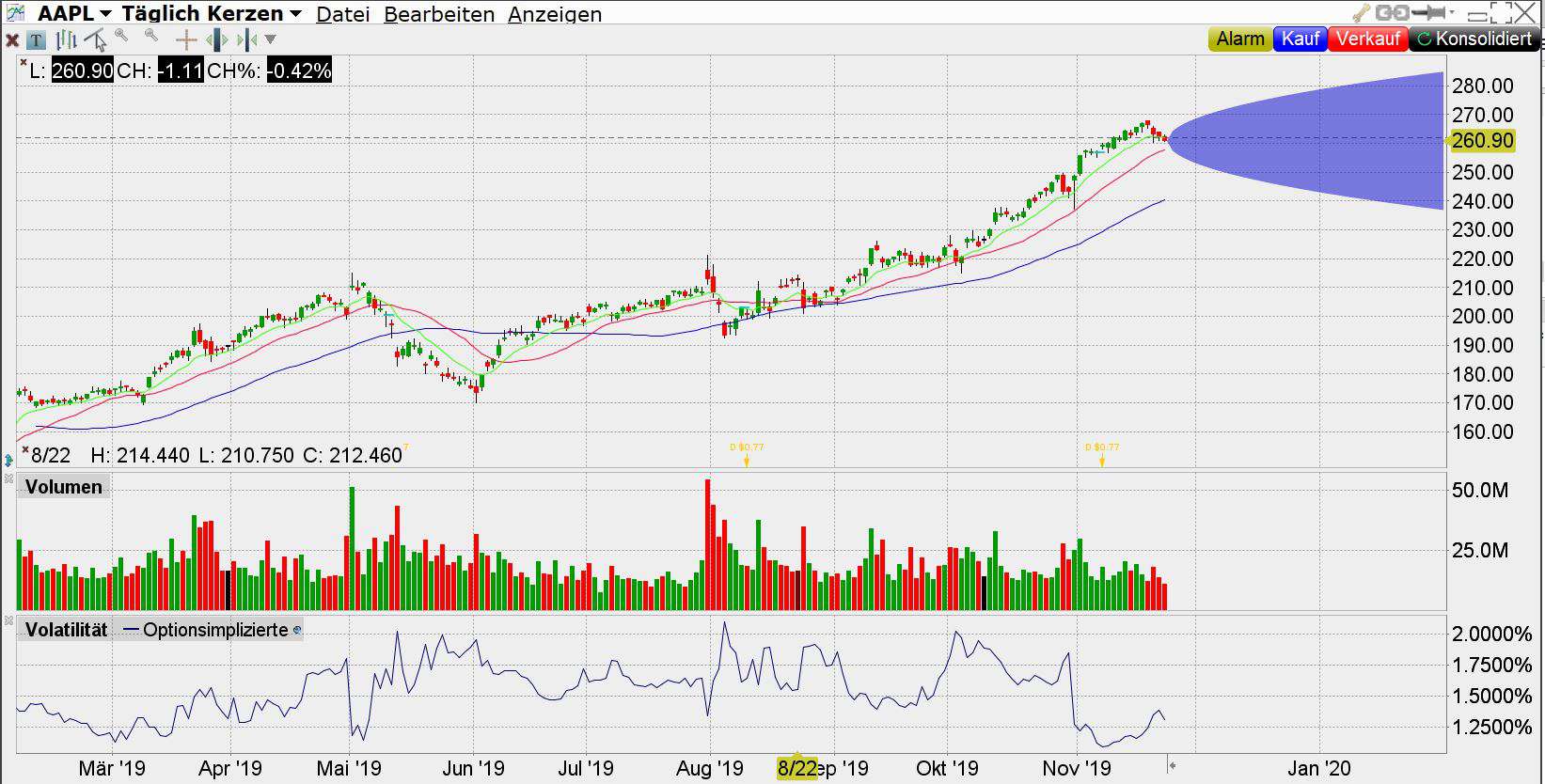 Chart der Apple Aktie (AAPL) mit impliziter Volatilität