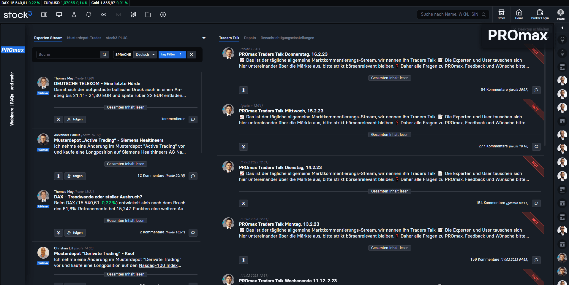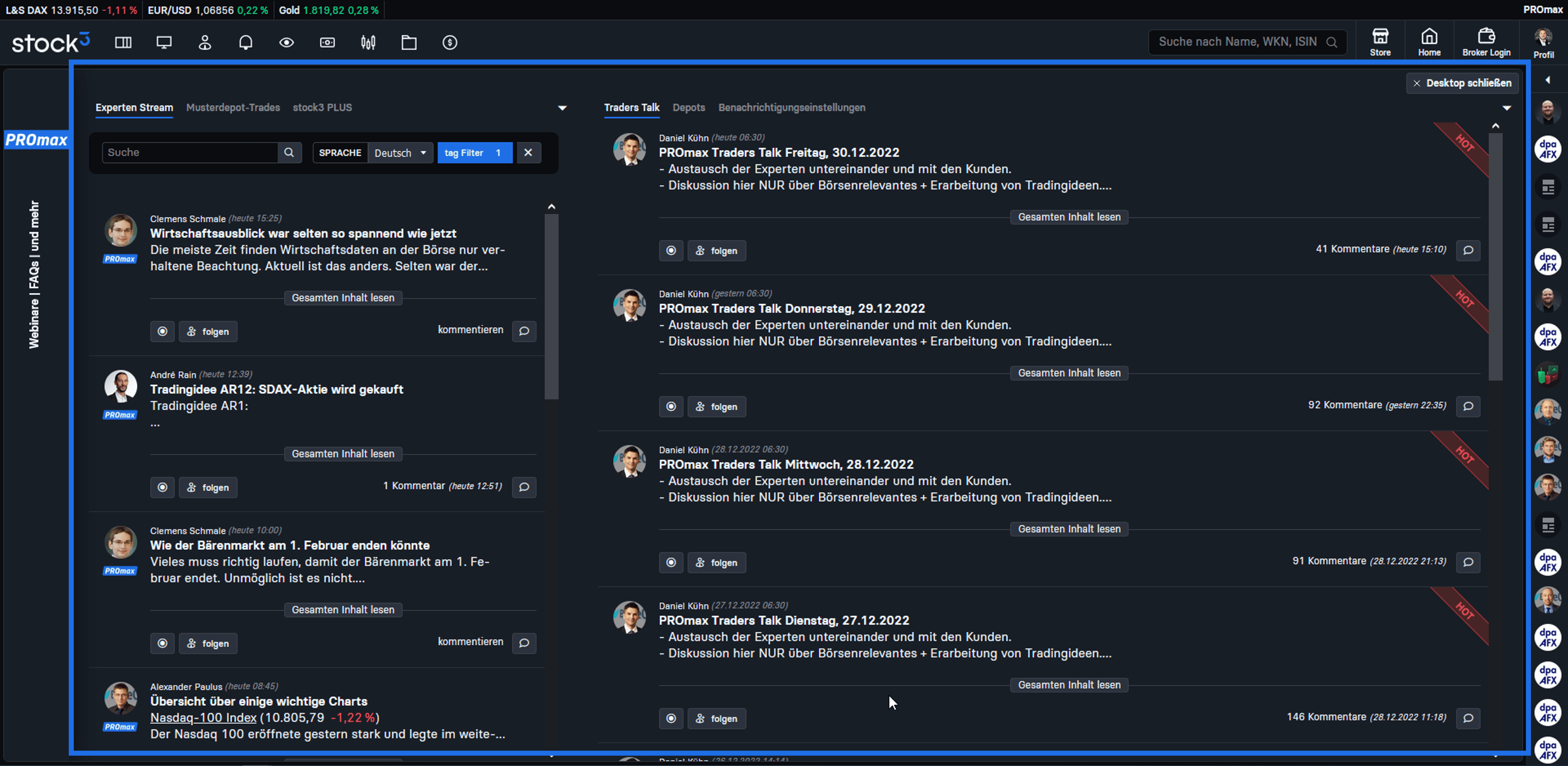 Ein weiterer dicker Pluspunkt im PROmax Paket ist selbstverständlich der Zugriff auf stock3 PLUS – ein normalerweise kostenpflichtiger Service mit ausführlichen Analysen, exklusiven Wissensartikeln und aufwendig recherchierten Beiträgen.