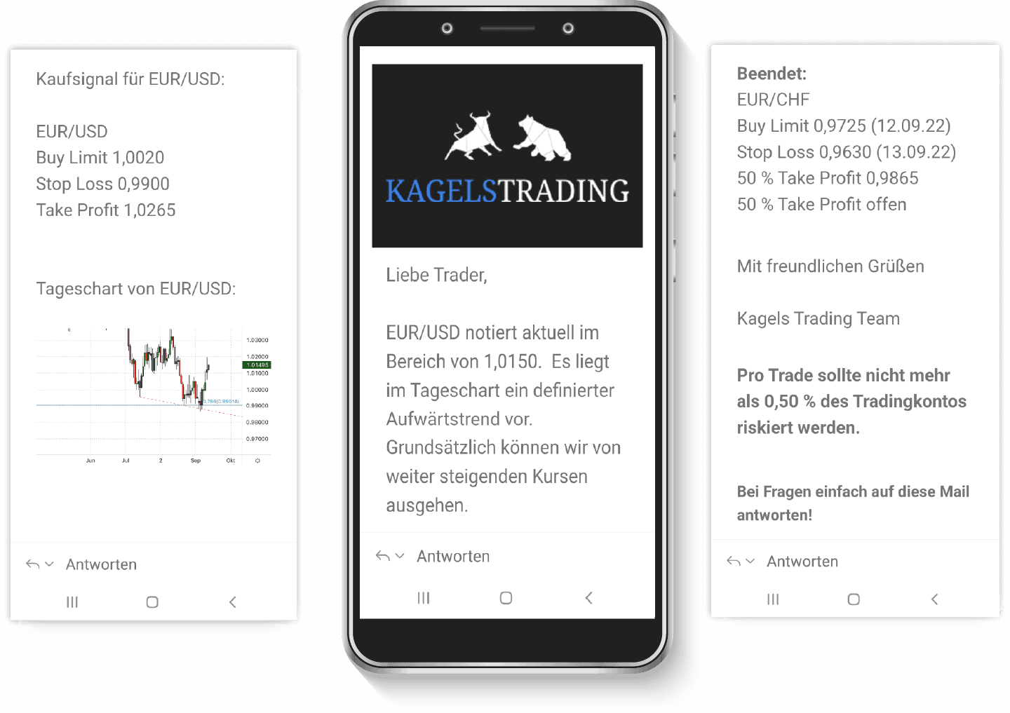 Unsere Handelssignale und Positionsanpassungen werden unseren Kunden per E-Mail zugeschickt. Bei jedem neuen Handelssignal und bei wichtigen Positionsanpassungen erhältst du ein Update.