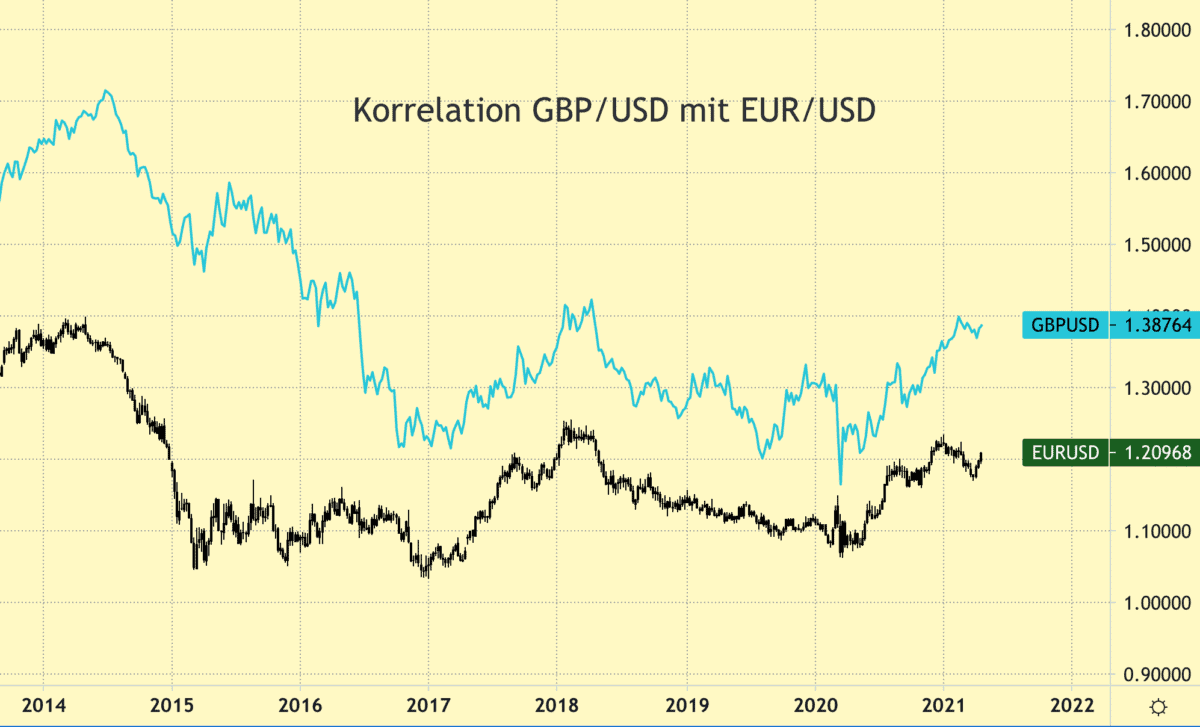 Forex Korrelation erklärt in 30 Sekunden Die Forex Korrelation von EURUSD zu GBPUSD Als Devisenhändler sollte man unbedingt auf die Korrelationen, also den potenziellen Gleichlauf der gehandelten Währungspaare achten. Wenn man z.B. eine Shortposition in EUR/USD